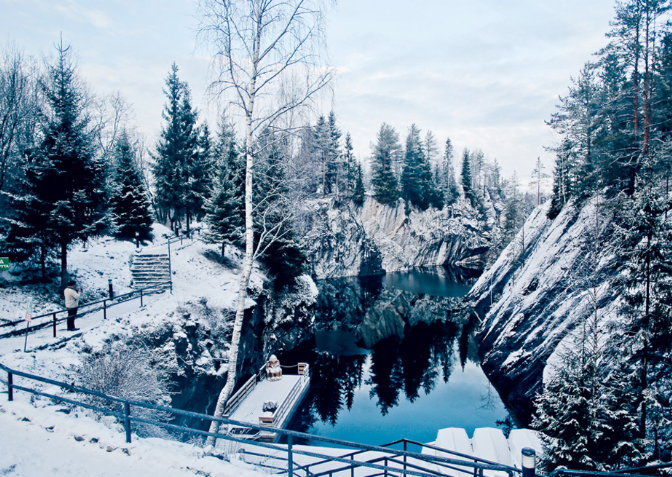 - Посещение мраморного каньона Рускеала (вх. билет за доп. плату). У вас будет свободное время неспешна прогуляться по мраморным аллеям, увидеть отвесные берега мраморных озер с прозрачной водой в красивейшей чаше из рускеальского мрамора с оборудованными смотровыми площадками.