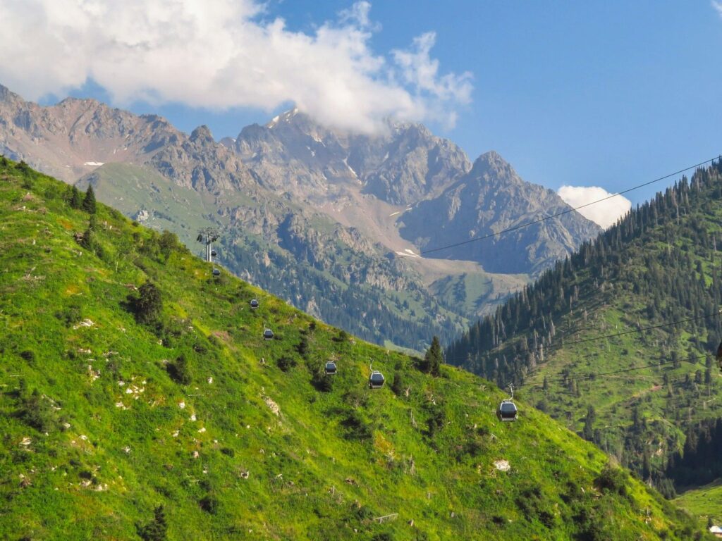 Горнолыжный курорт Шымбулак, расположенный всего в 25 км от Алматы в горах Заилийского Алатау, является крупнейшим курортом Центральной Азии и пользуется популярностью круглый год. Курорт предлагает широкий выбор развлечений для любого сезона. Зимой здесь можно покататься на лыжах и сноуборде по трассам, подходящим как для новичков, так и для профессионалов, соответствующим европейским стандартам. С самой высокой точки курорта, перевала Талгар (3 200 м), открываются впечатляющие виды на ледники и величественные горные хребты. Эти виды идеально подходят для фотографий и наслаждения природой.