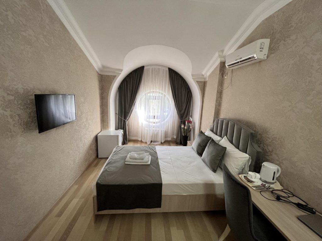 Шестиэтажное здание отеля на улице Буйнакской открывает своим гостям особое преимущество — всего 100 метров отделяют вас от живописной набережной Каспийского моря. К вашим услугам — уютные однокомнатные и просторные двухкомнатные номера, каждый из которых оснащен всем необходимым для комфортного отдыха: частной ванной комнатой, климат-контролем, телевизором, мини-холодильником и феном.