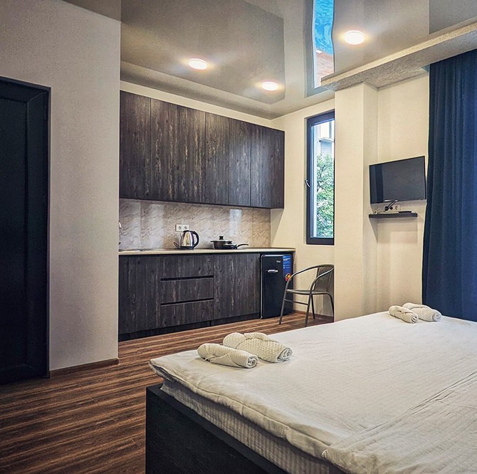 В номерах есть балкон, хорошо оборудованная кухня, холодильник и чайник, телевизор с плоским экраном и кабельными каналами, . Собственная ванная комната с душем, феном, полотенцами, тапочками и туалетно-косметическими принадлежностями. В некоторых номерах и апартаментах есть стиральная машинка.