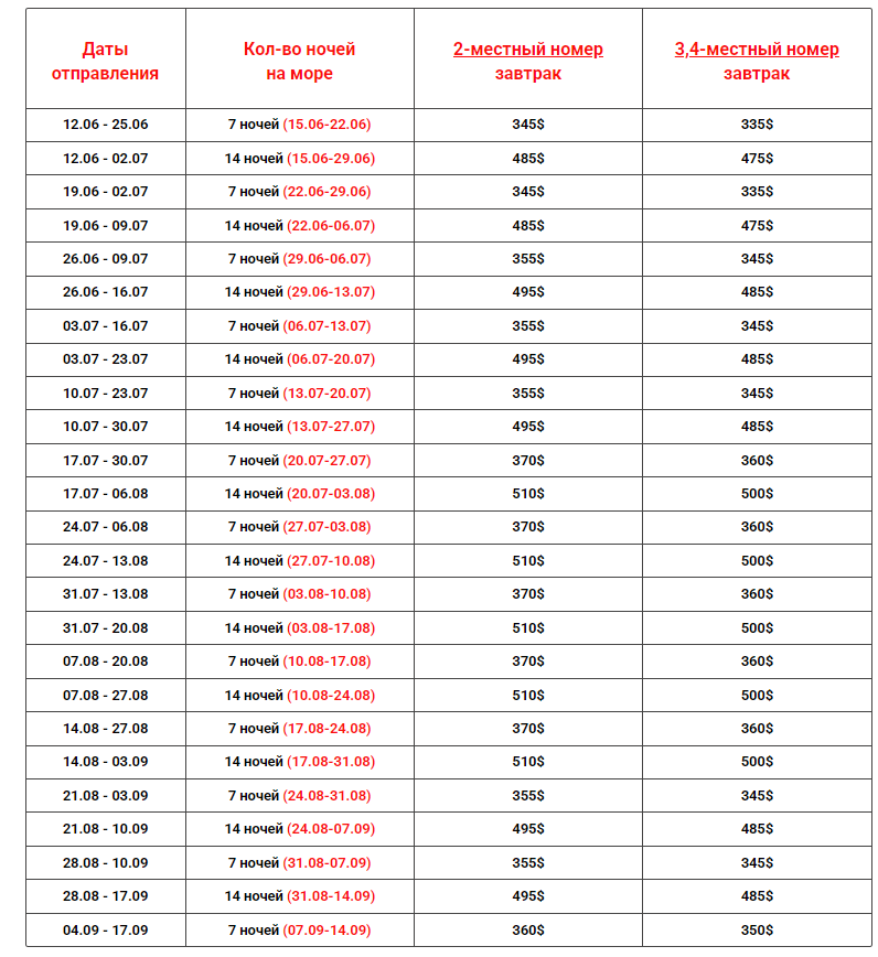 - скидка детям до 12 лет 50$ при проживании с двумя взрослыми
