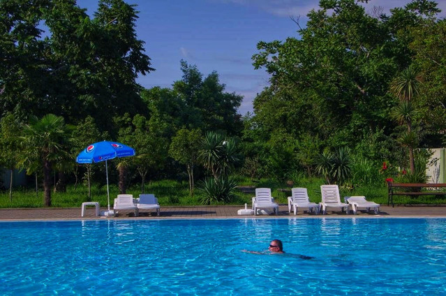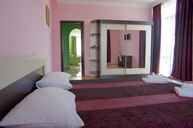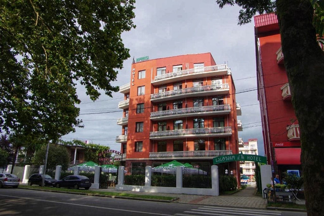 Один из лучших отелей Кобулети расположен прямо в центре, до пляжа можно дойти всего за минуту (50 метров). К услугам гостей огромный БАССЕЙН с подсветкой, футбольное поле, принадлежности для барбекю, красивая территория с рестораном и летним баром у бассейна, тропический сад с массой мест для отдыха, круглосуточная стойка регистрации и детская игровая площадка. Игровая комната с бильярдом, настольным теннисом и аэрохоккеем бесплатно.