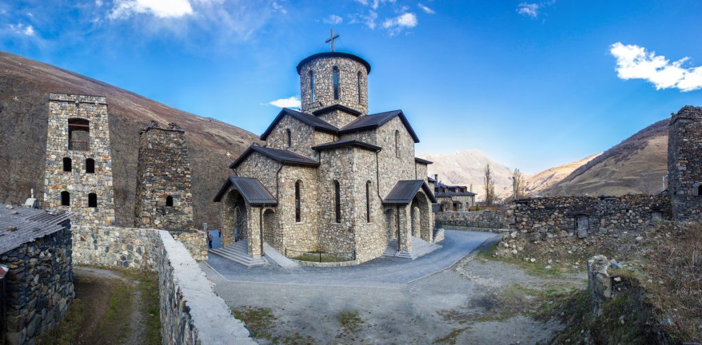 Аланский Свято-Успенский мужской монастырь – самая высокогорная православная обитель в России. Он находится в живописном Куртатинском ущелье Северной Осетии на высоте около 2 тысяч метров и со всех сторон окружён горными вершинами. Монастырь был возведён относительно недавно – в 2004 году, и своим внешним видом напоминает средневековое строение. Его массивные каменные стены и сторожевые башни, которые служат колокольнями, отражают осетинские архитектурные традиции.