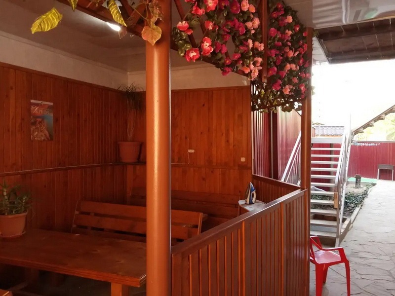 Инфраструктура: На территории оборудованы две беседки, есть мангалы, так же на территории есть летний душ. Предоставляется стиральная машинка (услуга платная) и место для глажки. В непосредственной близости находится большое количество павильонов и продуктовых магазинов, недалеко находится рынок. В шаговой доступности столовые и кафе, так же рядом находится детский развлекательный центр и спорт. площадка.
