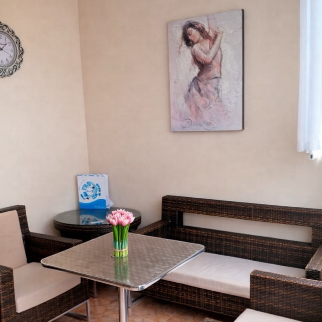 Гостевой дом имеет отличное расположение, в живописном месте, всего в 100 метрах от моря в центре Гагры. В шаговой доступности кафе, столовые, рестораны, АКВАПАРК и вся инфраструктура курорта. Огороженная и охраняемая территория. Есть кафе-столовая — можно заказать тур с питанием завтраки+ужины недорого. Отличная терраса со столиками и стульями, шикарные виды на горы гарантированы.