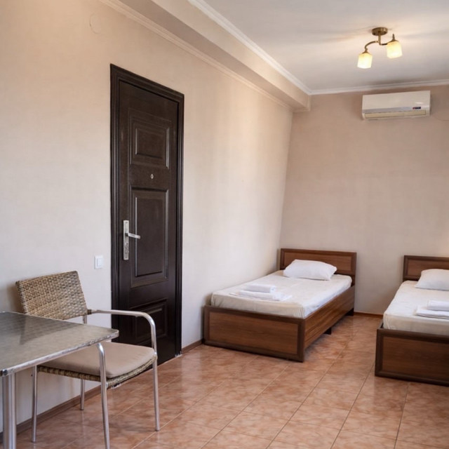 Размещение возможно в 2-местных номерах стандарт с возможностью предоставления полноценного доп. места. В каждом номере кондиционер, ЖК ТВ и санузел (душ, туалет и умывальник). Бесплатный Wi-Fi.