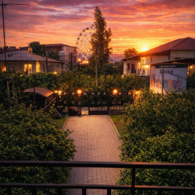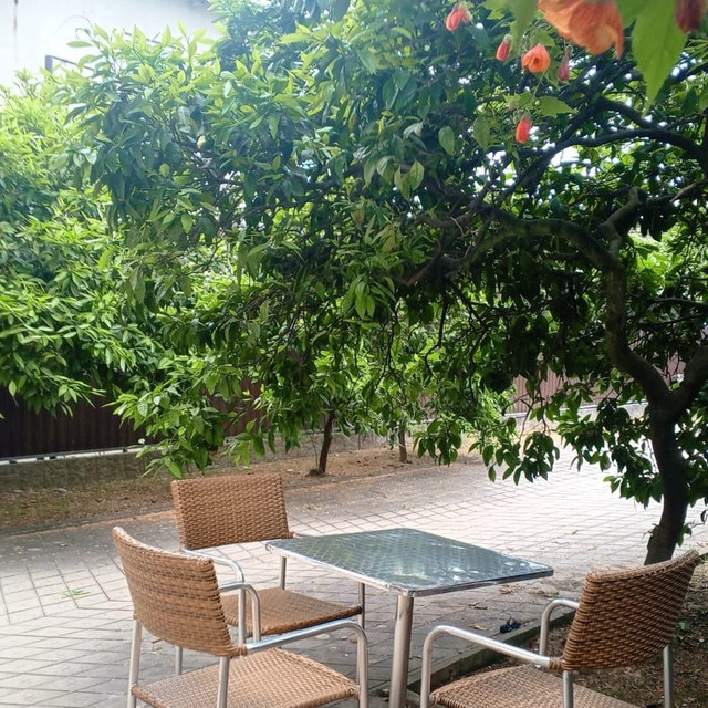 Гостевой дом имеет отличное расположение, в живописном месте, всего в 100 метрах от моря в центре Гагры. В шаговой доступности кафе, столовые, рестораны, АКВАПАРК и вся инфраструктура курорта. Огороженная и охраняемая территория. Есть кафе-столовая — можно заказать тур с питанием завтраки+ужины недорого. Отличная терраса со столиками и стульями, шикарные виды на горы гарантированы.