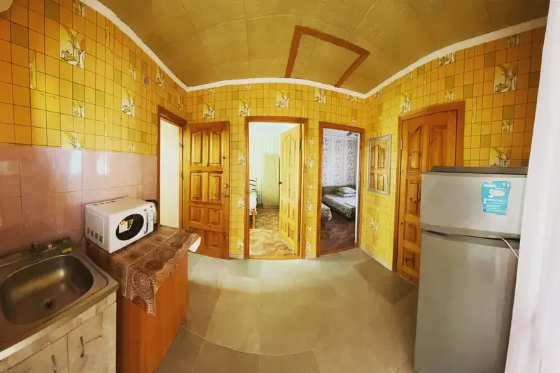 Гостевой дом располагается у подножия горы Алчак, рядом с развлекательным центром Аквапарк. Мы предлагаем размещение гостей в 2,3,4-х местных номерах с удобствами, которые расположены на 3м этаже и включают в себя: душ, туалет, телевизор, холодильник, кондиционер, бесплатный WiFi.Кухня расположена на первом этаже. Наш отель имеет автономное водоснабжение из Артезианского источника с постоянной горячей и холодной водой. На территории имеется беседка для отдыха, летняя кухня, мангал. Двор уютный, озелененный — растут экзотические деревья, комфортный для отдыха взрослых и детей. Рядом располагаются рынок, магазины, рестораны и кафе, а также экскурсионное бюро.