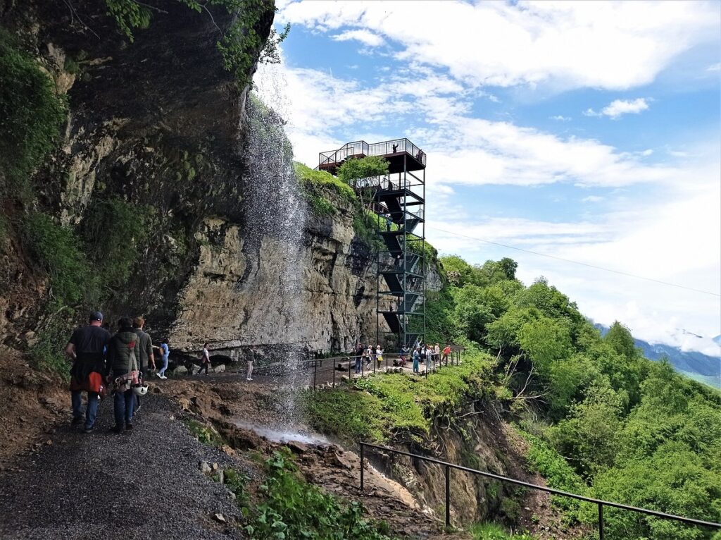 В горах посетим Салтинскую теснину со своим подземный красивым водопадом.
