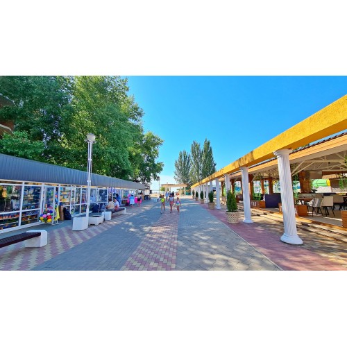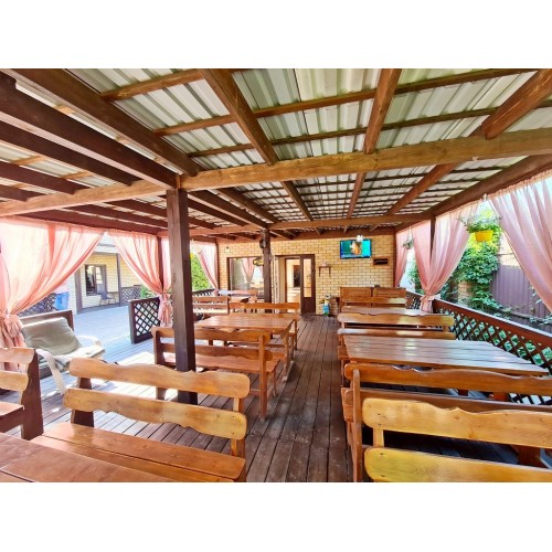 Питание: на территории гостевого дома своя столовая, организованно трехразовое питание, выбор блюд по меню (завтрак, обед и ужин) 1200-1400 рос.руб. в день на человека (примерно 15 USD) по меню. Есть мангальная зона. В шаговой доступности есть множество кафе и ресторанов.
