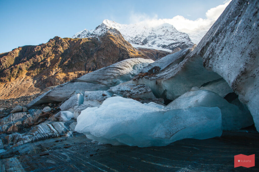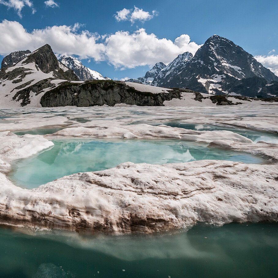Начинаем наш день с Джип-тура к Алибекскому ущелью. Отсюда нас ждёт неспешная пешая прогулка к поляне Узун-Тала, с которой открывается не менее живописный вид на ледник Алибек, чем летом.