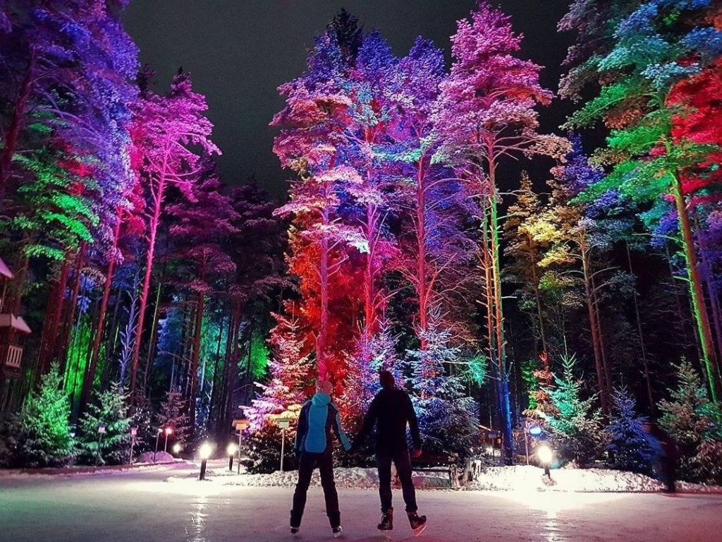 В «Охта-парке» каждую зиму открывается, самый красивый среди катков Петербурга. Вечером здесь зажигаются тысячи разноцветных огней, мигают гирлянды и звучат согревающие треки, погружающие в атмосферу сказочного леса.