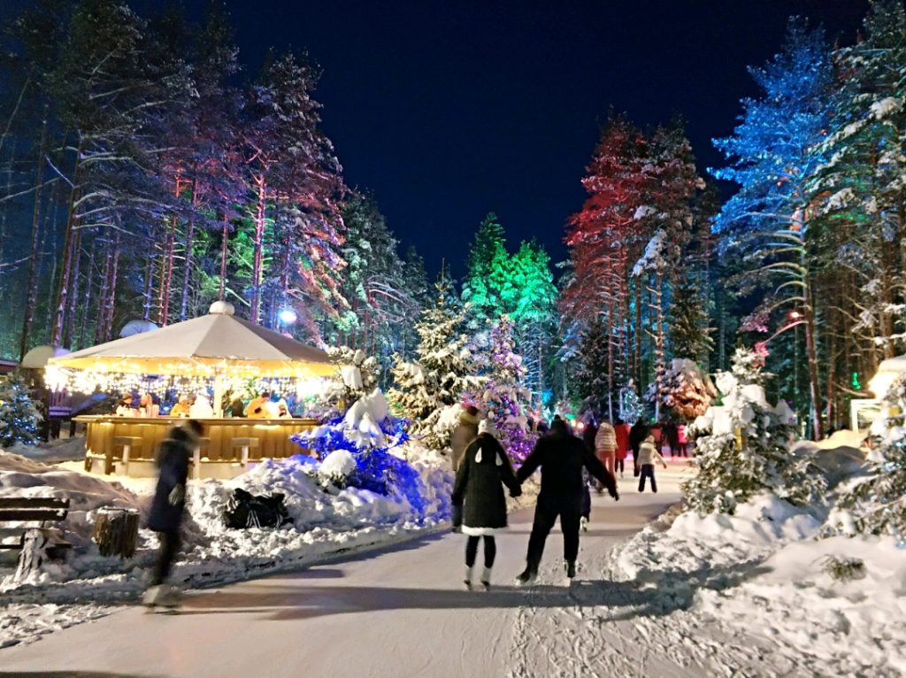 В «Охта-парке» каждую зиму открывается самый красивый среди катков Петербурга. Вечером здесь зажигаются тысячи разноцветных огней, мигают гирлянды и звучат согревающие треки, погружающие в атмосферу сказочного леса.