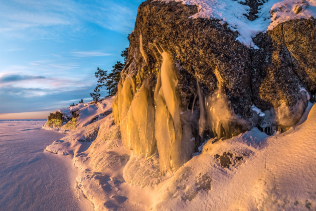 Увлекательная экскурсия по ладожским шхерам, которые предстанут перед вами в роскошном зимнем убранстве. Величественные вековые сосны на островах, суровые скалы и звенящая тишина — подарок природы, который можно получить только зимой. Вы отправитесь на прогулку по шхерам на судне на воздушной подушке. Такое средство передвижения является очень удобным для прохождения по льду и снегу. Вы сможете вдоволь полюбоваться великолепными зимними пейзажами обледеневших скалистых берегов.