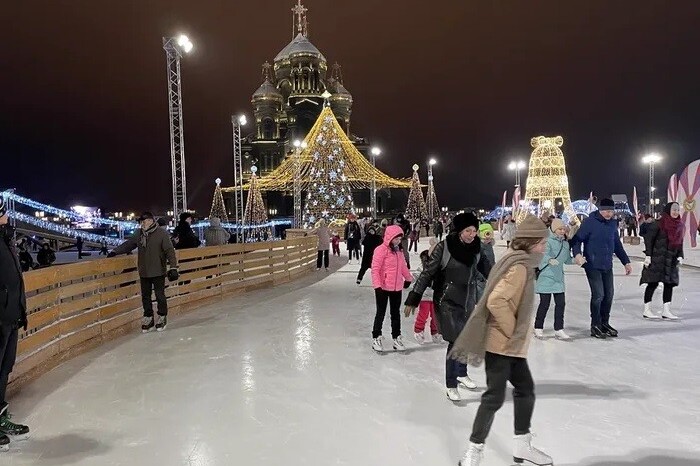 В зимний период работает каток с арендой коньков. Также для посетителей организовали несколько зон с зимними развлечениями, ярмарками, в том числе площадка с тюбинговым спуском.