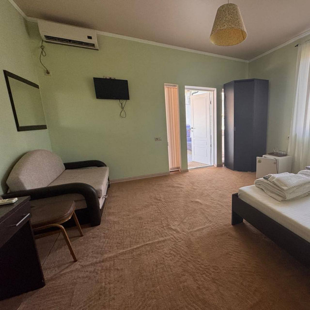 Проживание в 2-3-местных номерах стандарт с телевизором, холодильником, кондиционером и санузлом (душ, туалет и умывальник) с возможностью предоставления БЕСПЛАТНОГО дополнительного места для детей до 12 лет в 3-местном. На этажах красивые общие террасы с потрясающими видами на туманные горы! Бесплатный Wi-Fi.