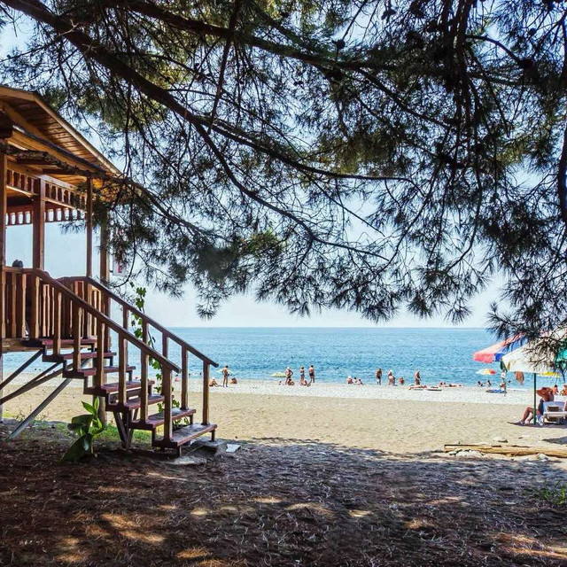 Отель ПАЛЬМА 2* расположен всего в 50 метрах от моря и песчано-галечного переходящего в песчаный пляжа, рядом вся инфраструктура курорта. Пляж, окружённый Пицундскими соснами, считается одним из самых чистых в Абхазии. В отеле 4 корпуса, на территории есть отличный БАССЕЙН с подогревом и подсветкой, пул бар и ресторан. В 15 минутах пешим шагом находиться сосновый парк. Воздух настолько наполнен эфирными сосновыми маслами, что происходит естественная ингаляция, климат лечебный и прекрасно подходит для профилактики ОРЗ и ОРВИ. В отеле очень вкусно кормят, можно купить тур с питанием завтраки+ужины.
