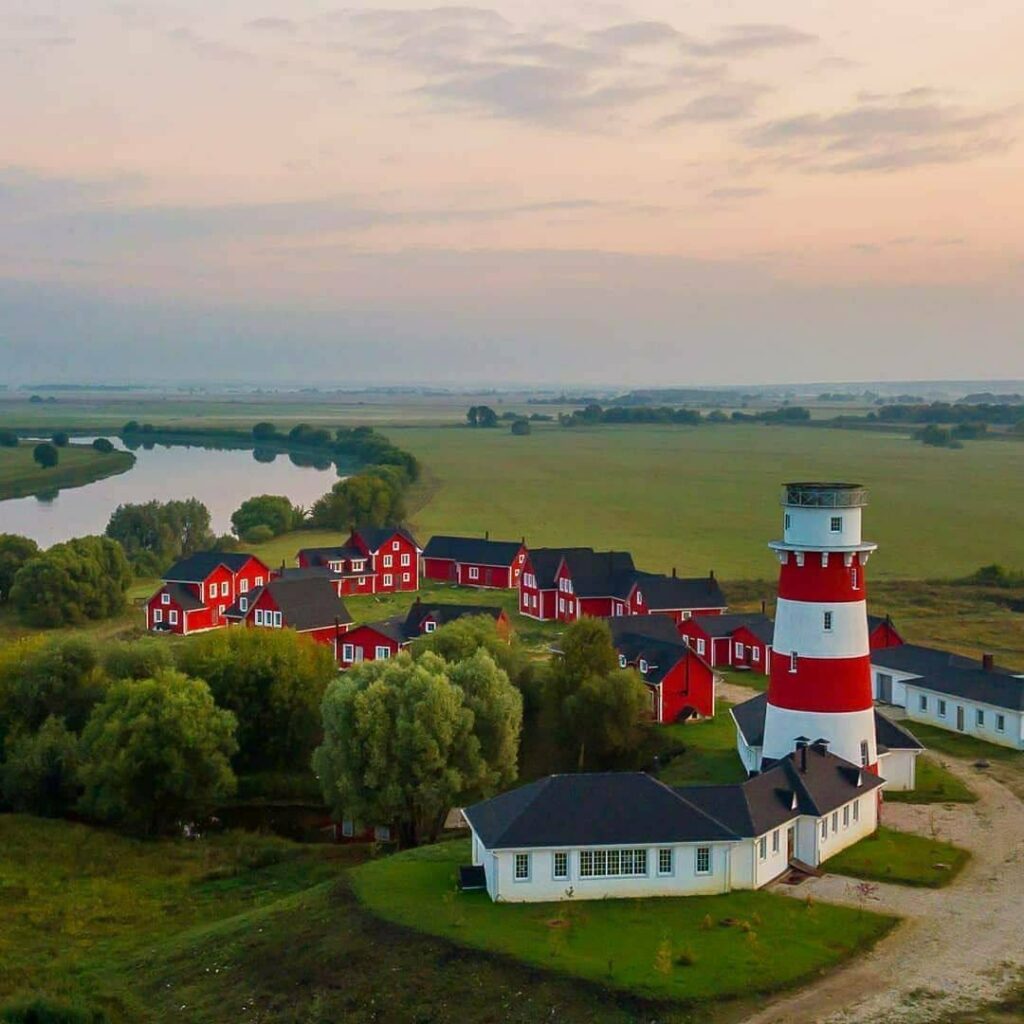 Трансфер в Рыбацкую деревню. Совсем недалеко от Рязани среди бескрайних полей и лугов нас ждет необыкновенное приключение –посещение Рыбацкой деревни в скандинавском стиле. Белоснежный, украшенный с красными полосами, великан-маяк очень похож на своего заморского собрата – популярный маяк Линдеснес в далекой Норвегии. Все желающие смогут подняться наверх, на смотровую площадку маяка и взглянуть на красоту Рязанской земли с высоты. Также можно прогуляться по деревеньке, сделать колоритные фотографии в скандинавском духе.