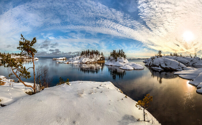 Увлекательная экскурсия по ладожским шхерам, которые предстанут перед вами в роскошном зимнем убранстве. Величественные вековые сосны на островах, суровые скалы и звенящая тишина — подарок природы, который можно получить только зимой. Вы отправитесь на прогулку по шхерам на судне на воздушной подушке. Такое средство передвижения является очень удобным для прохождения по льду и снегу. Вы сможете вдоволь полюбоваться великолепными зимними пейзажами обледеневших скалистых берегов. Внимание! Проведение экскурсии зависит от погодных условий и состояния льда на Ладожском озере.