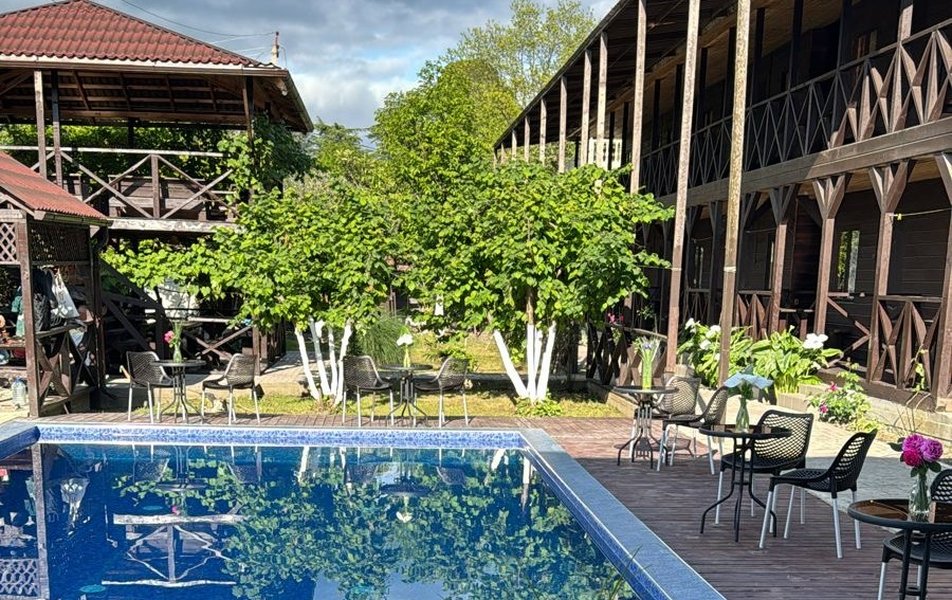 Отель ANHARA / Анхара с бассейном (подогреваемым) и собственным цитрусовым садом в шаговой доступности от пансионата «Самшитовой рощи». На благоустроенной зеленой территории обустроена зона отдыха с качелями и гамаками. Пляж в двух минутах ходьбы. Отель предлагает 2-х разовое питание (порционное).