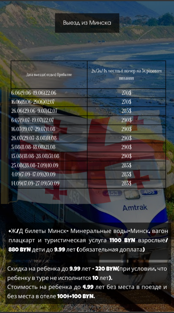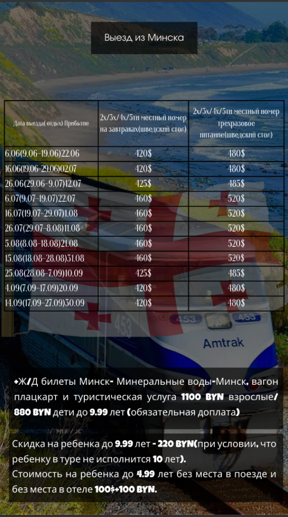 плацкарт и туристическая услуга — 1100 BYN взрослые /