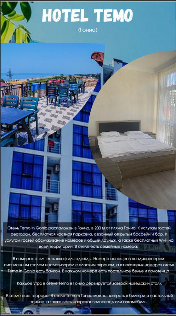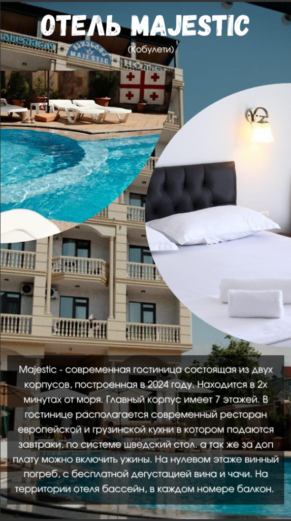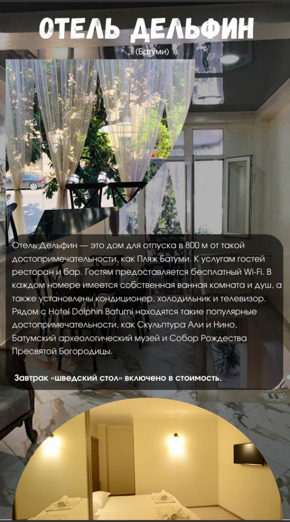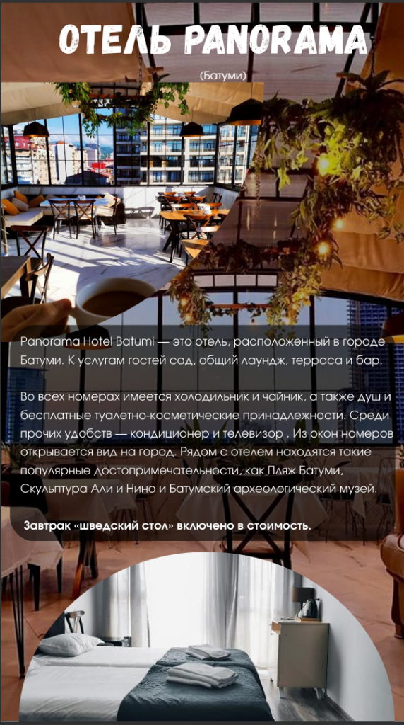 •проживание в выбранном отеле в Кобулети/Батуми;