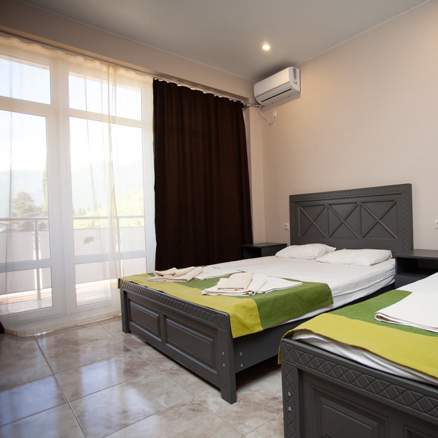 Размещение гостей производится в 2-3-4-местных номерах со всеми удобствами и личными балконами. В каждом номере кондиционер, ЖК ТВ, холодильник, чайник и санузел (душ, туалет и умывальник). Прекрасные виды на горы, море и город порадуют каждого! Бесплатный Wi-Fi.