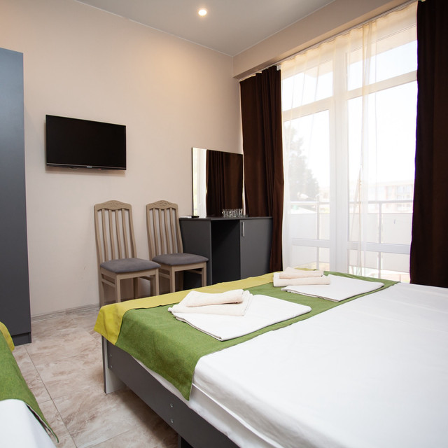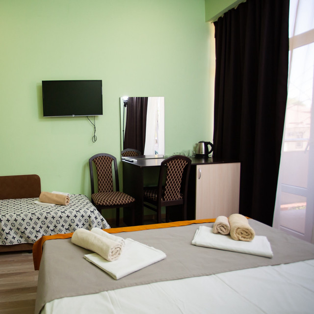 Размещение гостей производится в 2-3-4-местных номерах со всеми удобствами и личными балконами. В каждом номере кондиционер, ЖК ТВ, холодильник, чайник и санузел (душ, туалет и умывальник). Прекрасные виды на горы, море и город порадуют каждого! Бесплатный Wi-Fi.