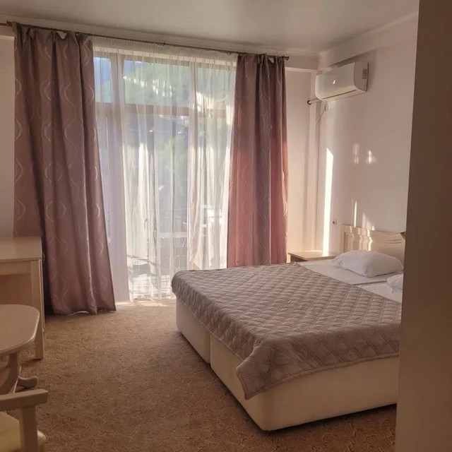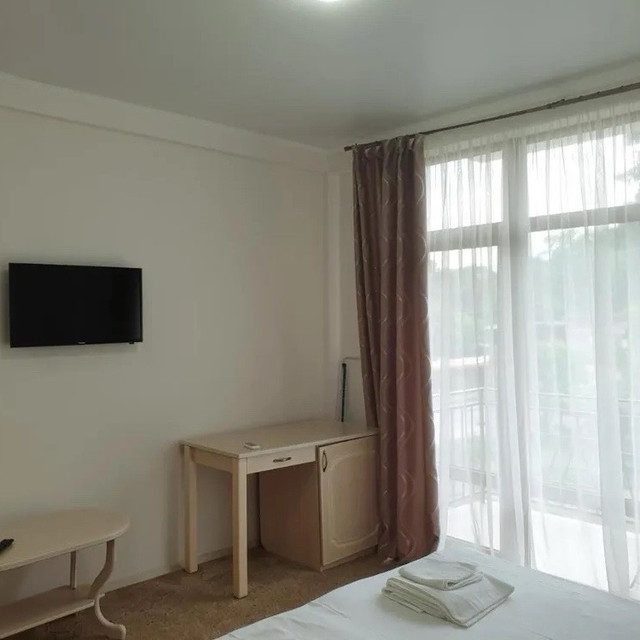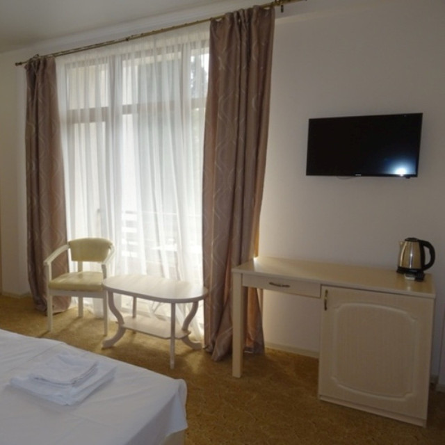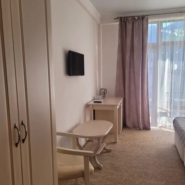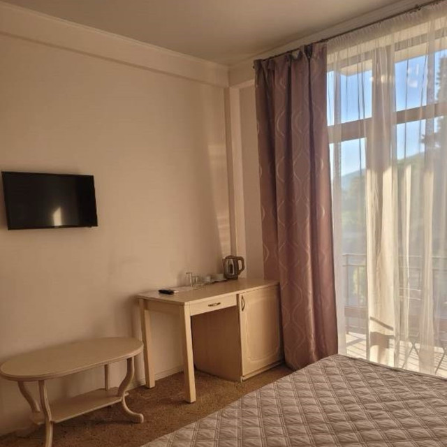 Размещение гостей производится в 2-местных номерах стандарт со всеми удобствами и балконами. Возможна установка полноценного доп. места в каждый номер. Французские окна делают все номера светлыми и воздушными! В каждом просторном номере кондиционер, ЖК ТВ, холодильник, чайник и санузел (душ, туалет и умывальник). Прекрасные виды на горы, море и город не оставят равнодушными! Бесплатный Wi-Fi.