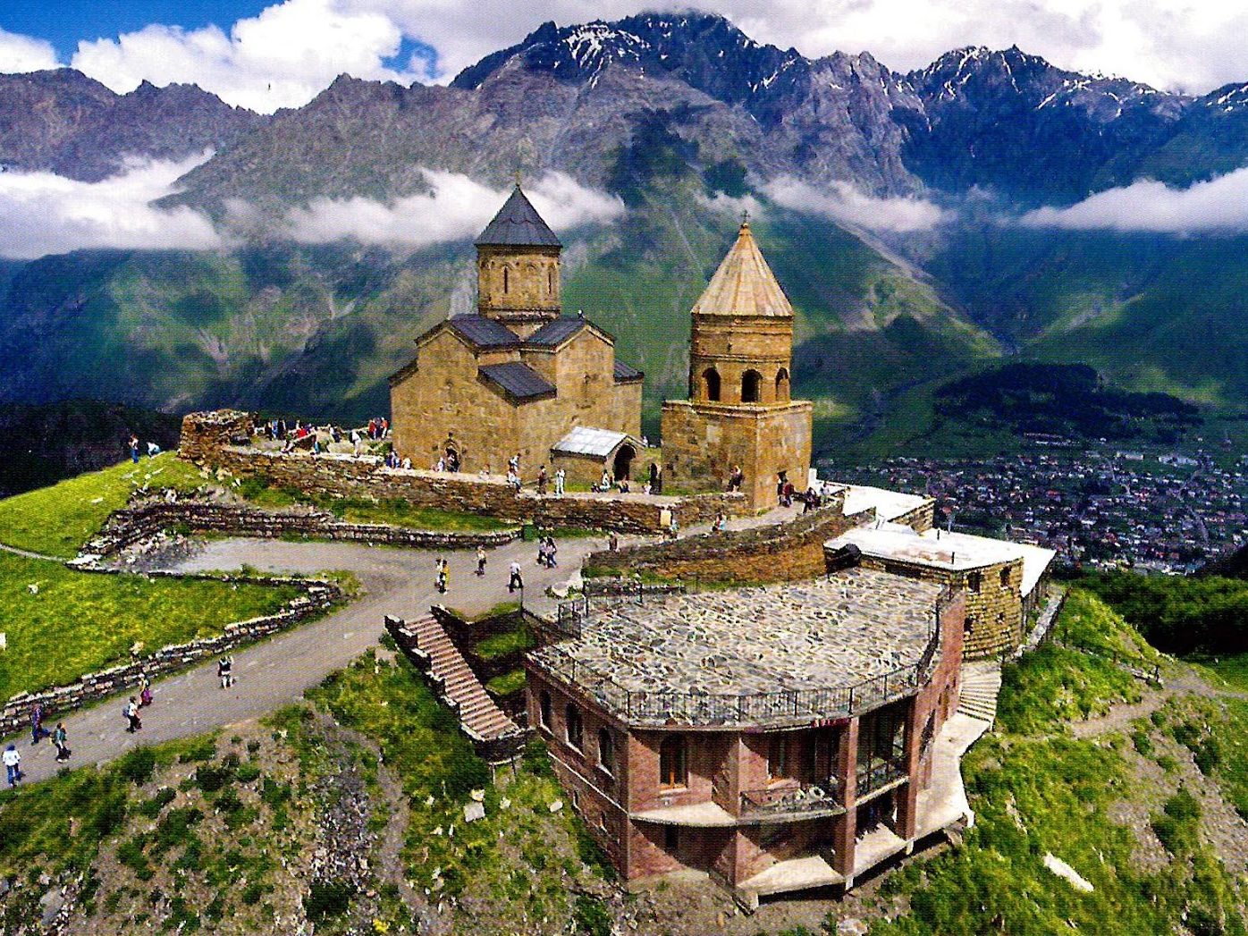Продолжаем наш путь к величественной горе с ледяной вершиной «КАЗБЕК» — одной из высочайших вершин Кавказа. Для этого пересаживаемся на джипы и поднимемся в гору к уникальным по своей красоте местам, откуда открывается потрясающий вид на Гергети, Степанцминда и заснеженную гору Казбек (при условии хорошей погоды мы увидим ее вершину) (доп.плата за подьем на джипах к Гергетской церкви 15$ c человека по желанию).