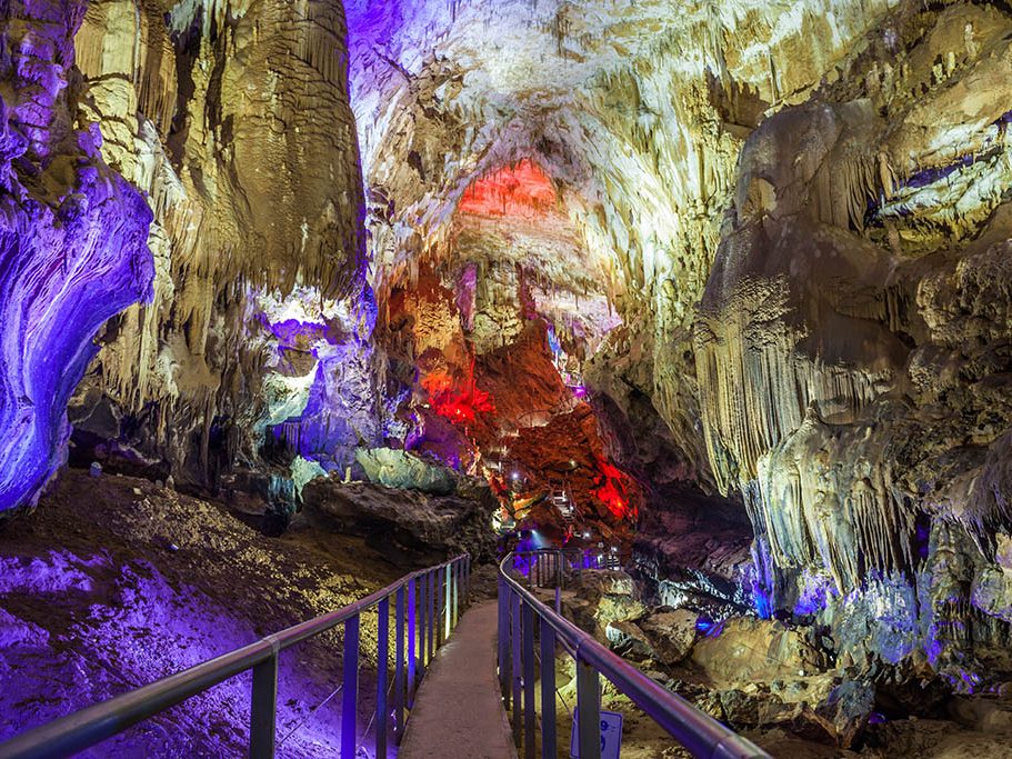 ПЕЩЕРЫ ПРОМЕТЕЯ – это незабываемая и удивительная карстовая пещера, расположенная вблизи города Цхалтубо в историческом крае Имеретия. Является охраняемой природной территорией. Под классическую музыку вы погрузитесь в атмосферу нереальности, которую создавала природа на протяжении миллионов лет. Внутри пещеру украшают кальцитовые натечно-капельные образования: сталактиты, сталагмиты и сталагнаты — они имеют самые разнообразные формы и размеры. Длина всей пещеры где-то 11 километров с несколькими подземными речками и даже озёрами. Постоянная температура внутри пещеры 14 градусов, поэтому рекомендуем взять теплую одежду