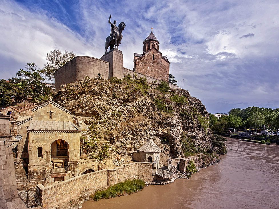Увидим Церковь Метехи (V в.) — красивый и гордый символ Тбилиси, где по преданию молилась царица Тамара.