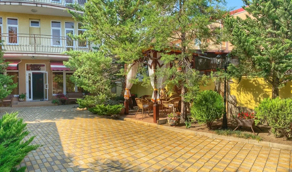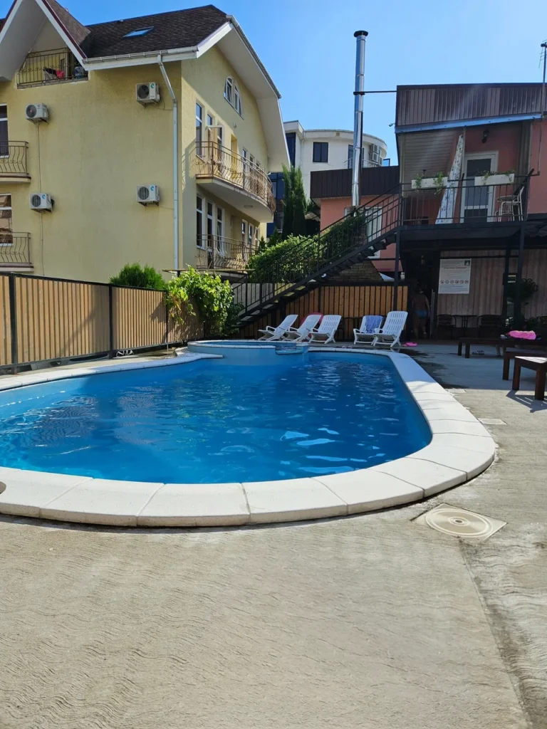 ОПИСАНИЕ:Мы предлагаем своим гостям размещение в четырех этажном доме. Так же на этаже есть сушилки для белья, гладильная доска и утюг. Территория ухожена и украшена ландшафтным дизайном. СЕЗОНЫЙ БАССЕЙН С ПОДОГРЕВОМ. Зоны отдыха (беседки), зона барбекю. И конечно же на территории гостевого дома есть детская площадка для маленьких отдыхающих.