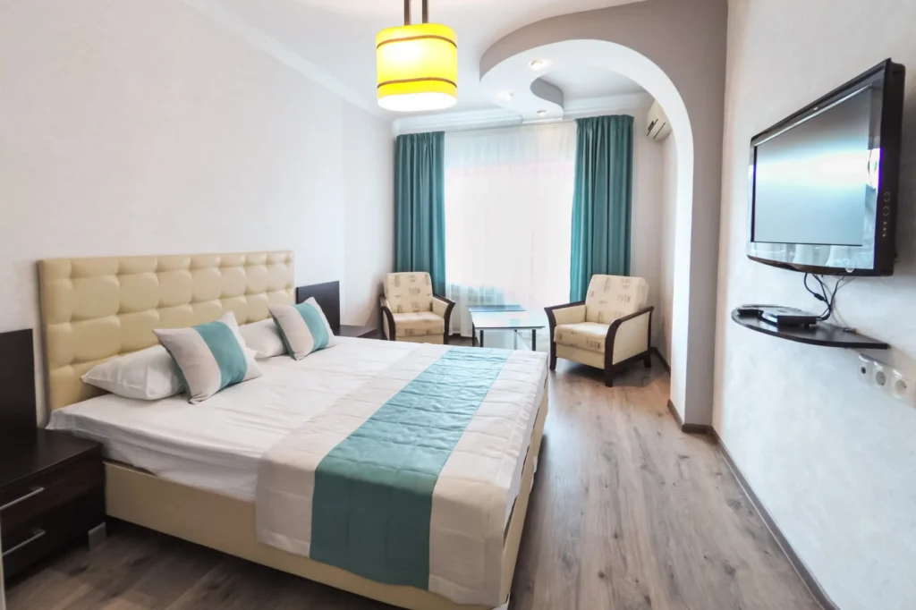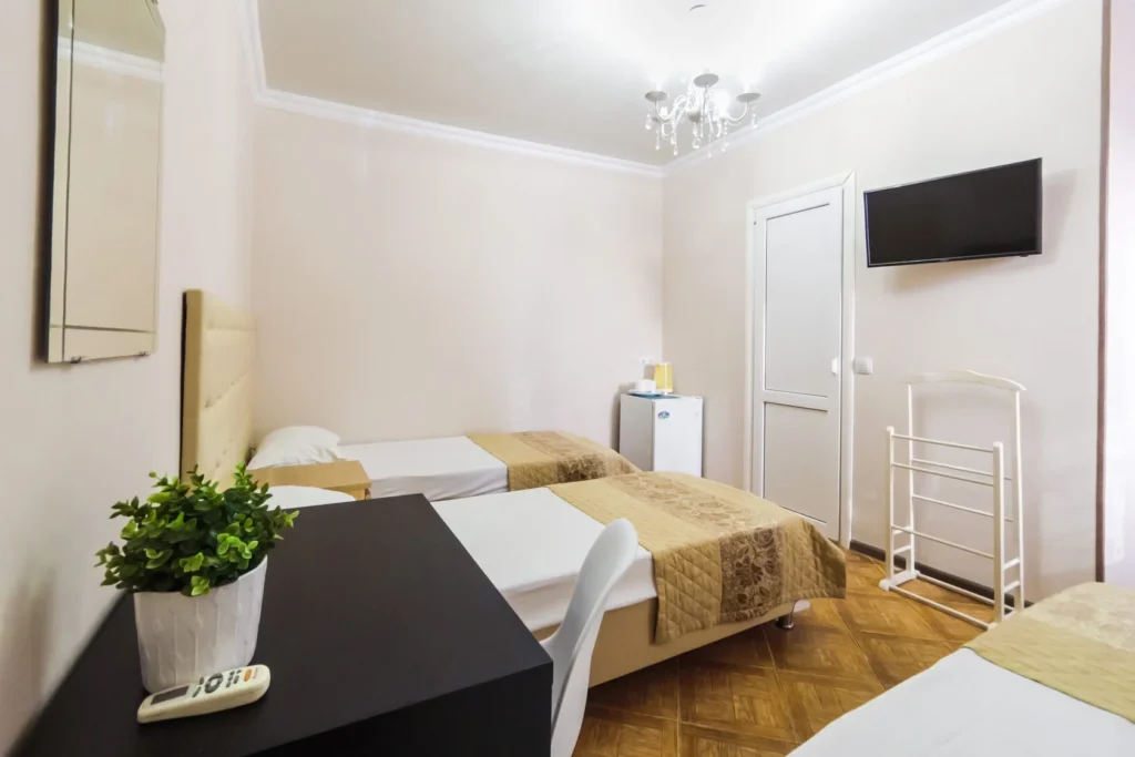 ПРОЖИВАНИЕ: 2−3−4 местные номера оснащены всей необходимой мебелью и техникой, (кровати, комод, прикроватные тумбочки, стулья, вешалка, шкаф). К услугам гостей предлагаются номера разной категории комфортности, включая экономы, стандартные номера и улучшенные варианты комфорт с кондиционером, телевизором, холодильником, санузлом Wi-Fi интернет. Из окон открывается чудесный вид на море и горы.