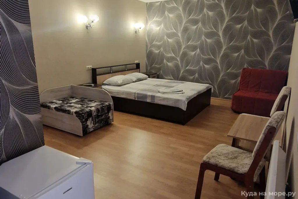 ПРОЖИВАНИЕ: 2−3−4 местные номера стандарт, домик под ключ, 2 и 3 комнатный номер с кухней. В номерах есть все необходимое для комфортного проживания: мебель, холодильник, телевизор, сплит система, сан узел, так же на всей территории отличный WI-FI.