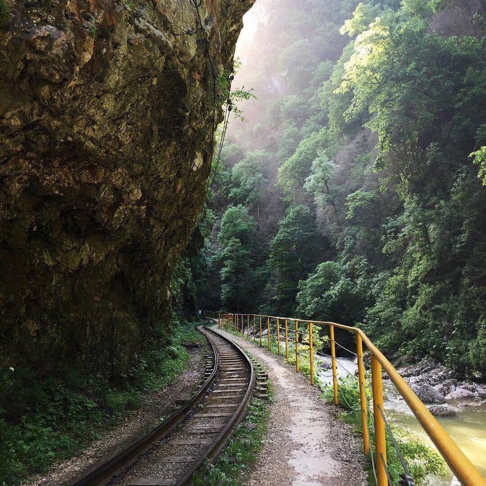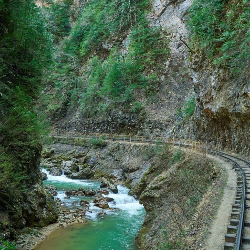 Экскурсия в Гуамское ущелье (доп. плата 1000 росс. руб). Имея длину 3 км и глубину 400 м, ущелье сужается местами до 2 м. Это гигантская каменная щель, сильноизломанная в плане. Неиссякаемое восхищение вызывают обнажения горных пород по сторонам реки и многочисленные небольшие водопады, срывающиеся с отвесных скал. Также вас ожидает поездка по Гуамскому ущелью на раритетном поезде по узкоколейной железной дороге, извилистой лентой проложенной под скалами.